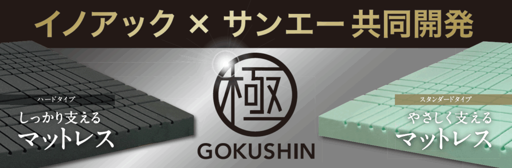 サンエーと共同開発したマットレス「極-GOKUSHIN-」もご紹介いたします。